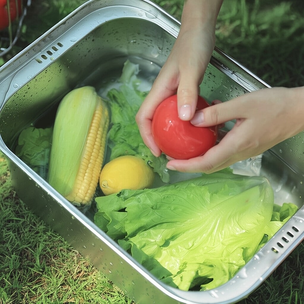 ✅ 7L Large Capacity – Spacious enough for washing vegetables, fruits, or dishes, making it an essential outdoor kitchen tool.