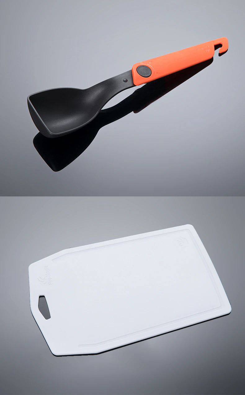 Features: Suitable for: 1-2 personsMaterial: PET/PE/PP/PC Specifications: “Chef Cooking Kit (net weight:239g folding size:255*205*82mm) Clip Size: folding:158*47*51mm not folding:208*47*72mm Weight:45g Material:PA6+10%GF Spatula Size: folding:174*60*35mm not folding:266*60*32mm Weight:35g Material:PA6+10%GF Soup spoon Size: folding:169*46*58mm not folding:259*36*58mm Weight:38g Material:PA6+10%GF Oil bottle Size: φ40*146mm Volume:110ml Weight:15g Material:PET Chopping board Size:232*153*3mm Weight:80g Material: PE Powder cruet Size:62*31*61mm Volume:60ml Weight:26g Material:…