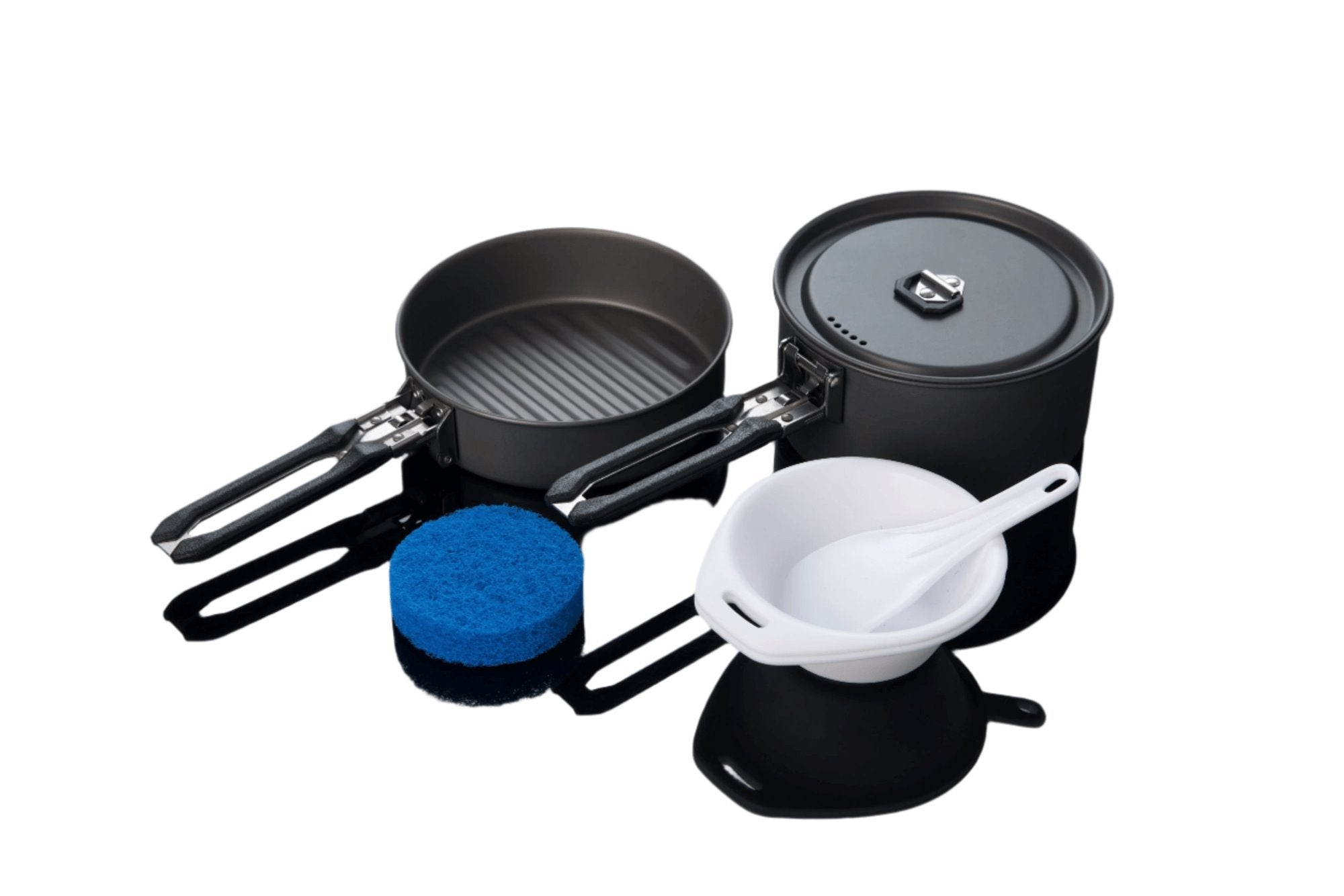 - Complete Set: Includes 1 pot (0.8L), 1 frypan (0.5L), 2 PP bowls, 1 scoop, and 1 sponge.