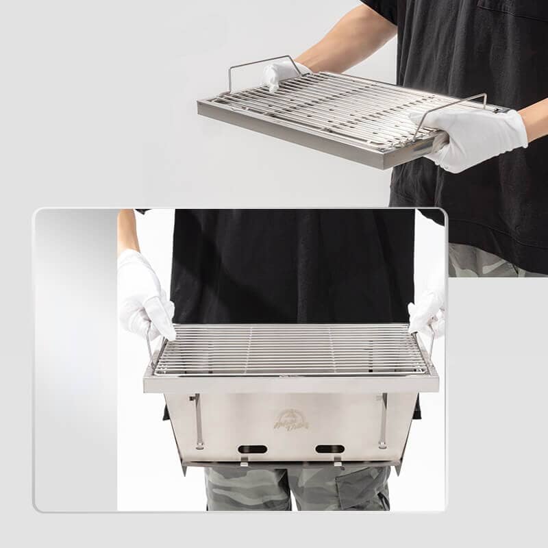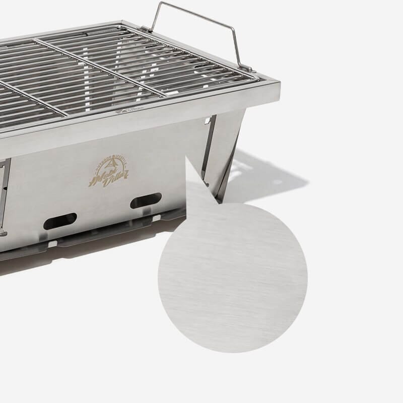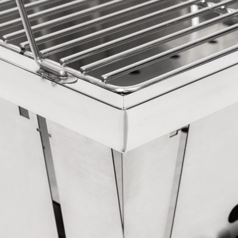 This IGT Charcoal Grill is designed for outdoor cooking enthusiasts who value convenience, durability, and versatility. Made from food-grade, ultra-thin stainless steel, this grill ensures safe and high-quality cooking experiences. The grill features a solid and textured brushed surface, showcasing fine workmanship and a sleek appearance. Its innovative design allows for quick and easy setup with a simple lift to unfold, and it can be just as easily folded down for storage. Compatible with all IGT single unit tables, this grill is perfect for camping, picnics, and other outdoor activities.