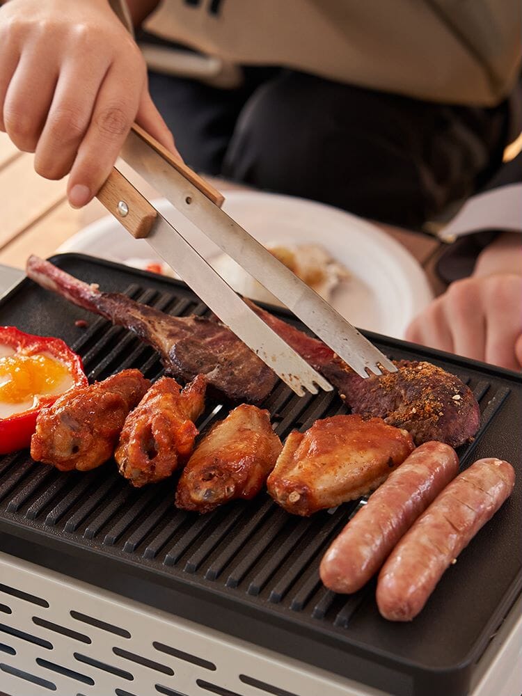 - Ergonomic Design: The beechwood handles are designed for a comfortable grip, making it easy to handle your food while grilling.