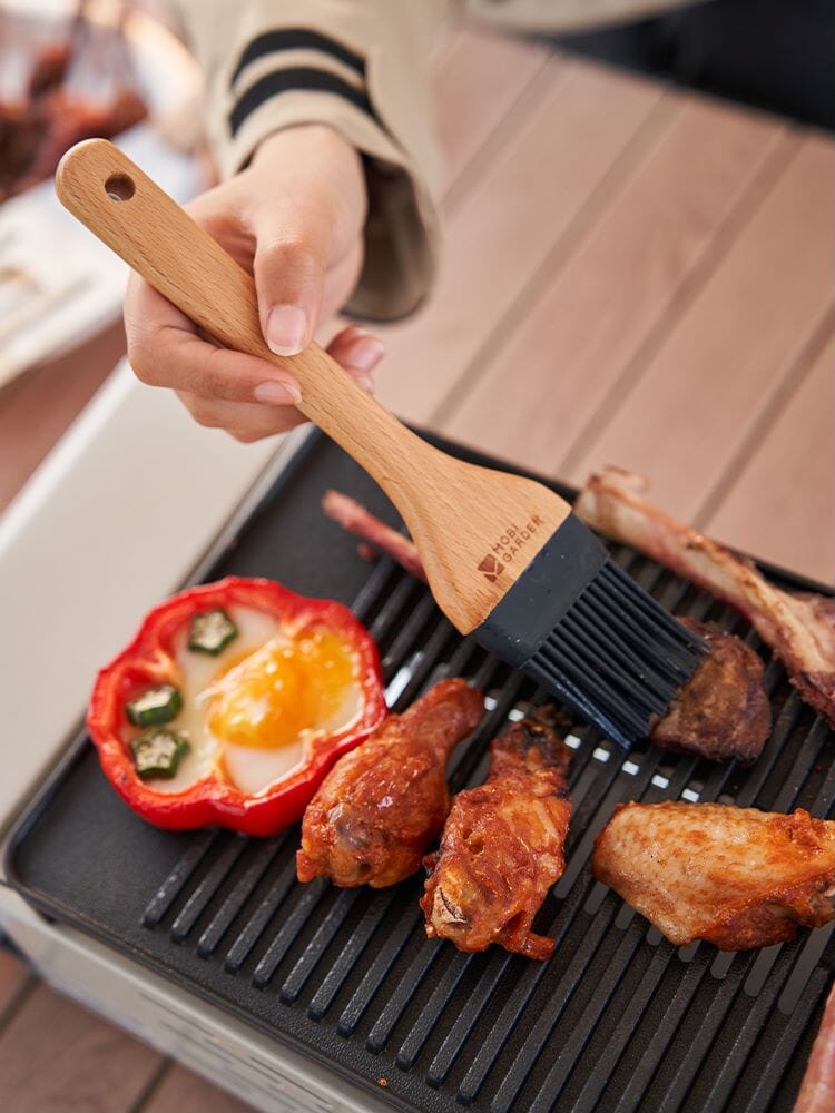 - Silicone Brush: The brush features a beechwood handle and a silicone brush head, perfect for precise and even basting.