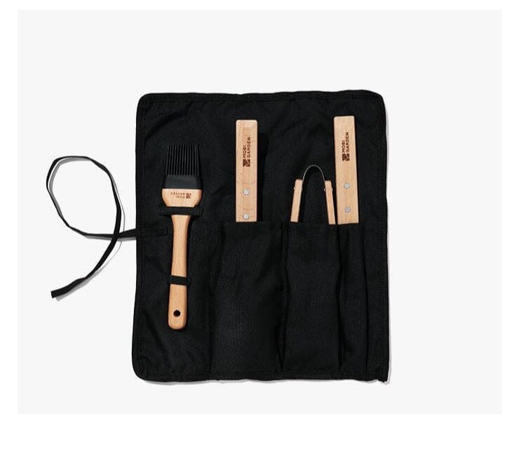 Enhance your outdoor grilling experience with the MOBI GARDEN BBQ 4-in-1 Set. This essential barbecue set includes a pair of clamps, a spatula, a fork, and a brush, all designed with beechwood handles and high-quality materials. The stainless steel construction of the clamps, spatula, and fork ensures durability and effective performance, while the silicone brush provides precise basting. Lightweight and easy to carry, this set is perfect for camping, picnics, and backyard barbecues.