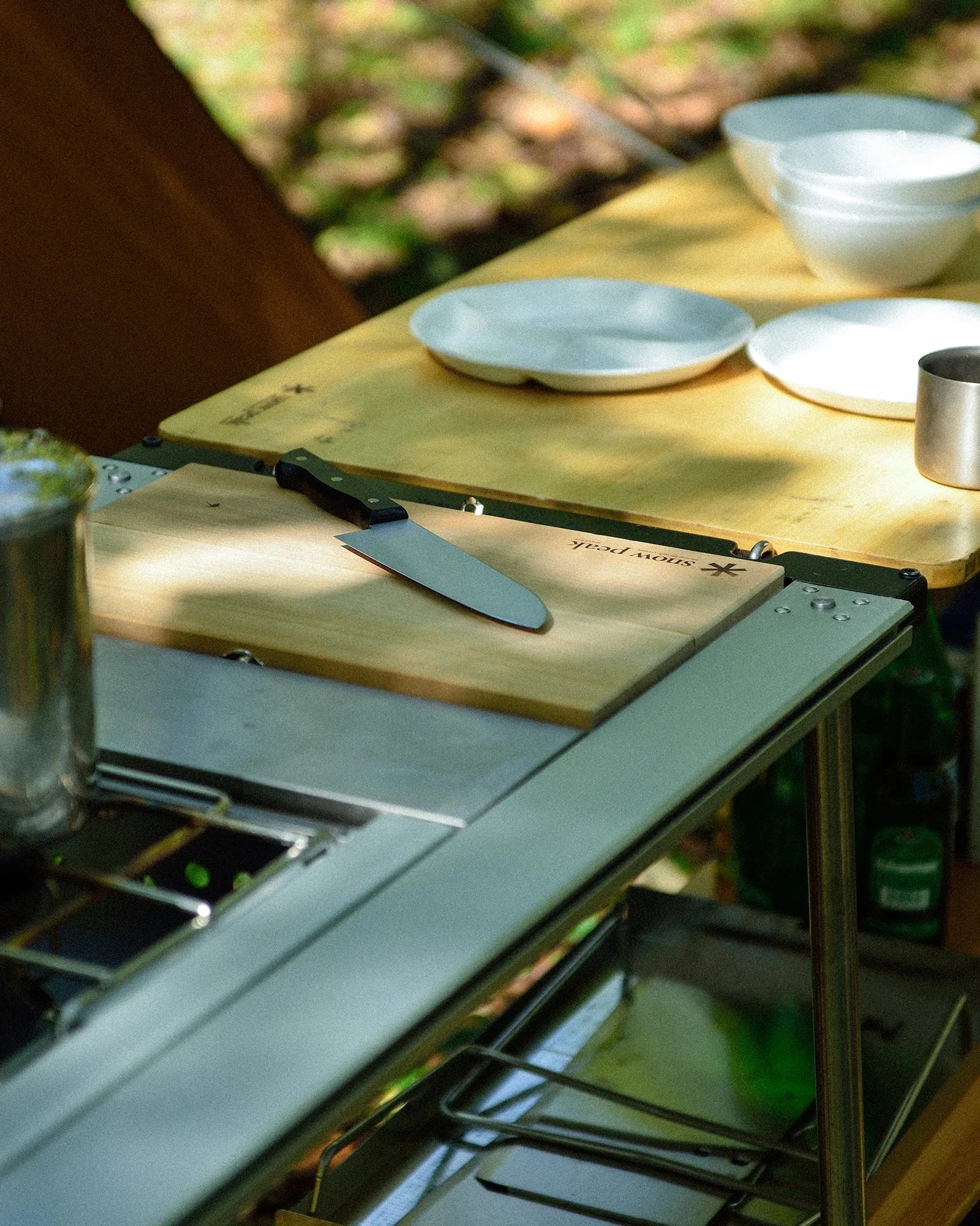 The Snow Peak Chopping Board Set L is a versatile and compact kitchen tool designed for outdoor enthusiasts and home cooks alike. This foldable birch wood cutting board comes paired with a high-carbon stainless steel knife, making meal preparation efficient and convenient during camping trips, picnics, or at-home cooking.