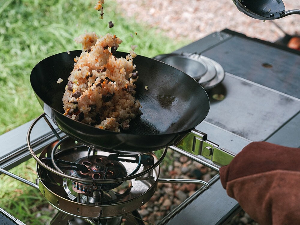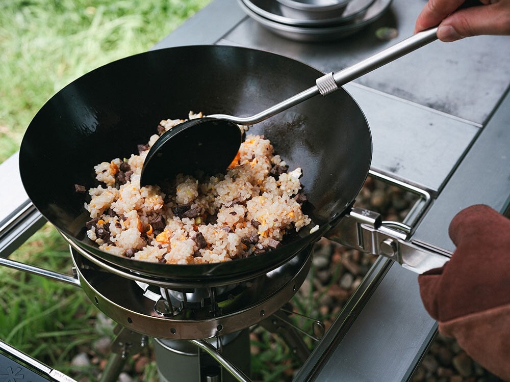 Elevate your camping cuisine with the Snow Peak Kaen Pot Set, designed for cooking authentic Chinese dishes and other high-heat meals. Made from durable iron, the wok evenly distributes heat, making it perfect for stir-frying, sautéing, and other high-temperature cooking techniques. This limited-edition set includes a wok, a detachable handle, a ladle with a detachable handle, and a specialized stand compatible with the Snow Peak GigaPower LI Stove Goen. Compact and easy to store, the Kaen Pot Set is perfect for warming up with delicious meals during autumn and winter camping trips.